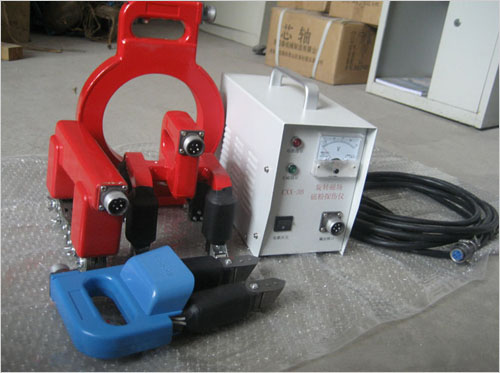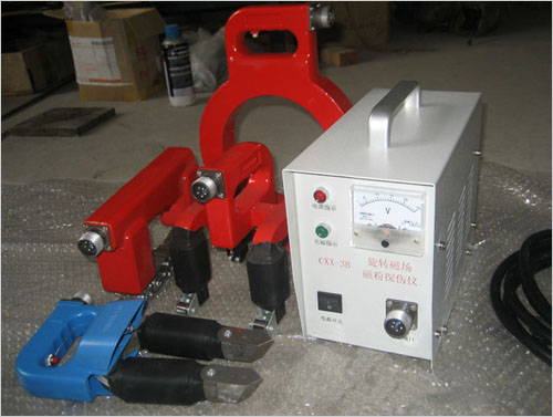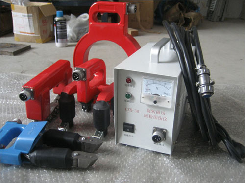 工作節拍:建議在長時間連續工作時:充磁時間≦3秒,間隙時間≧5秒 |  | | 4 |  | 型號:CXX-3B(大圓環探頭檢測,物件通過中間探傷) 名稱:便攜式磁粉探傷儀(旋轉圓環磁粉探傷儀) | 這款是環形探頭,工件從中通過.