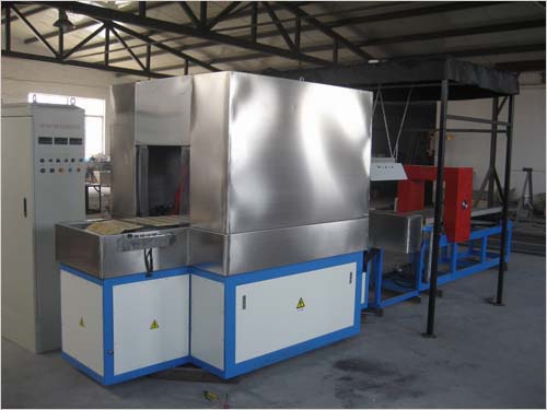 本設備采用手動、自動兩種運行方式,由可編程控制器(PLC)集中控制。手動時,可進行每個功能的單步獨立操作;自動時,設備自動執行PLC內部程序,初始狀態時,工件經人工上料后,按“啟動”按鈕,自動執行傳送——噴淋——磁化——傳送——等一系列動作。設備設有三組交叉線圈,復合磁化在工件上形成旋轉磁場,一次性顯示磁痕,具有較高的工作效率。