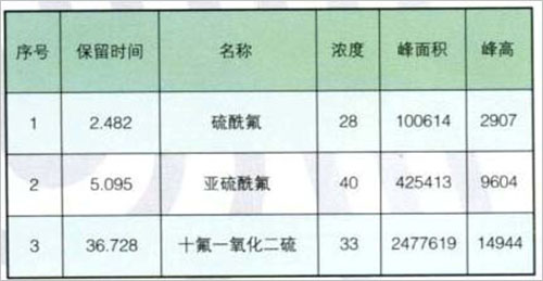標氣:SO2F2(硫酰氟):28ppm; S2OF2(亞硫酰氟):40ppm; S2OF10(十氟一氧化二硫):33ppm余:SF6(六氟化硫)